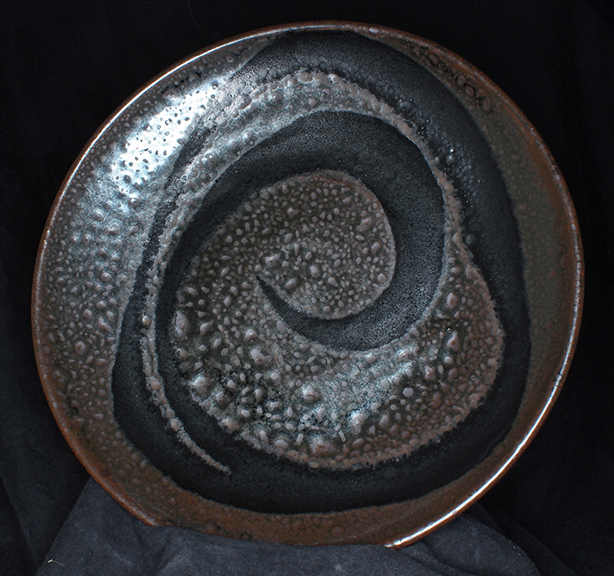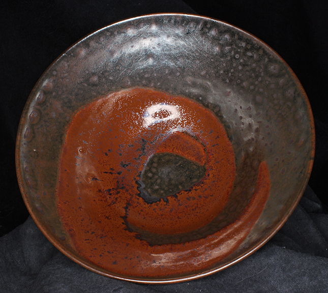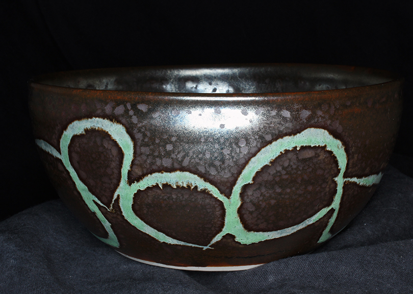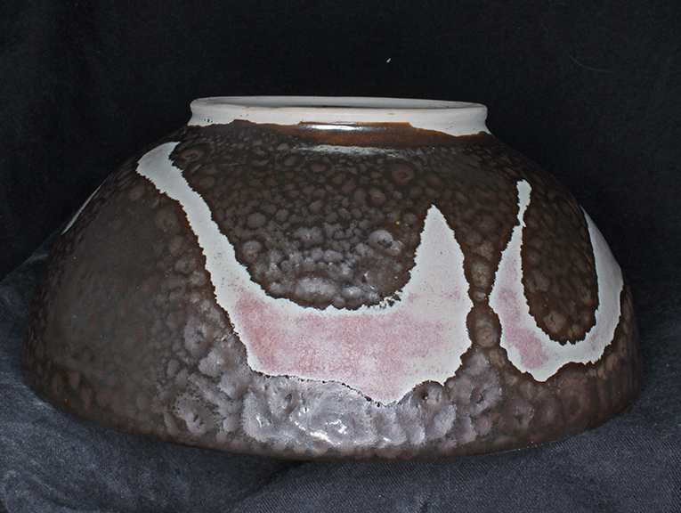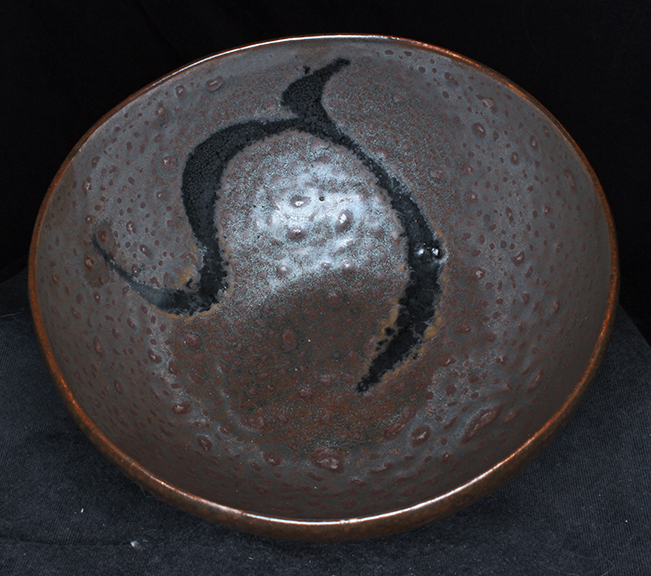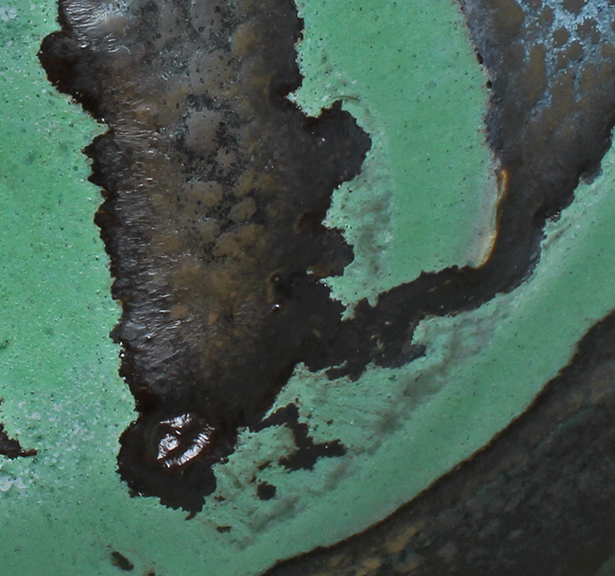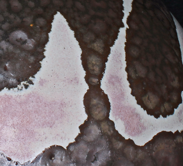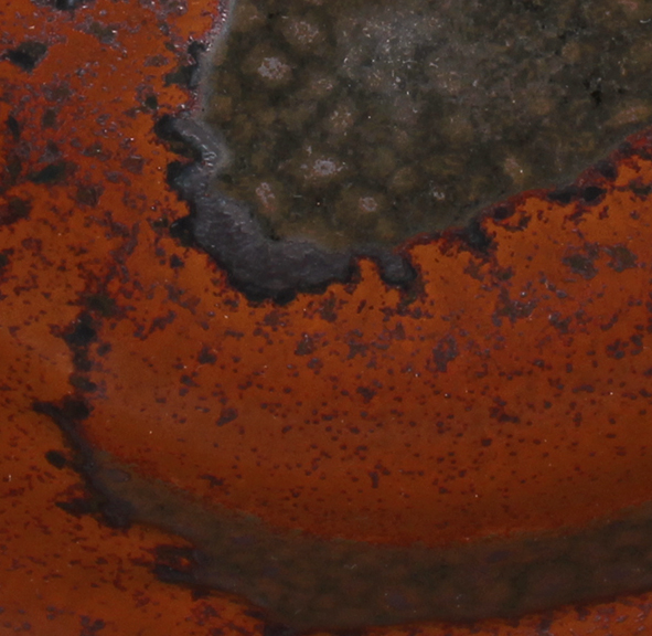 Second glaze inlay in the silvery oil spot glaze - a closer look at the interface between the two glazes.